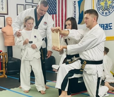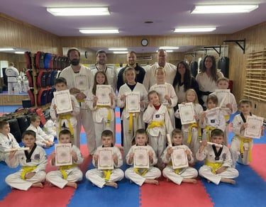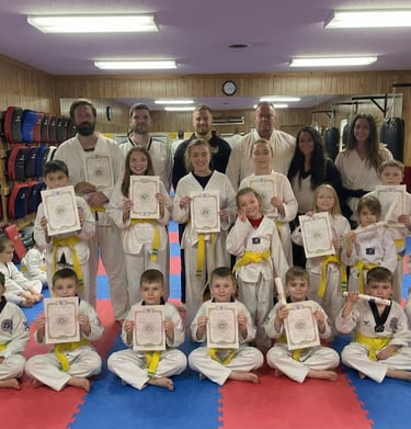 Black belt instructors guide kids through discipline and courage, helping them resist harmful influences and build strong character.